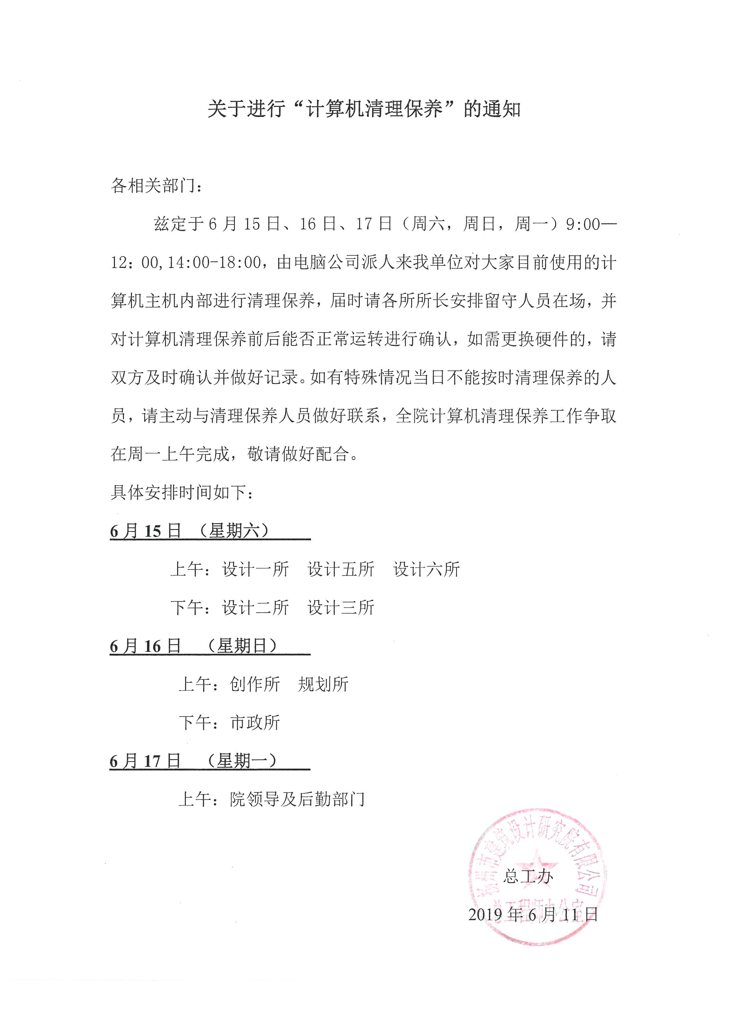 ·關于進行“計算機清理保養”的通知 [2019-06-11]